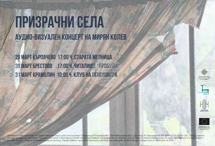 Виж всичкиАудио-визуалният концерт „Призрачни села“ на Мирян Колев гостува в Кърпачево, Брестово и Крамолин от 29 до 31 март със свободен вход