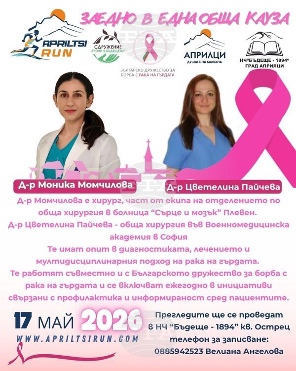 Прегледите ще се извършват в сградата на Народно читалище „Бъдеще – 1894 г.“ в кв. „Острец“ от хирурзите д-р Моника Момчилова от болница „Сърце и мозък“ в Плевен и д-р Цветелина Пайчева от Военномедицинската академия в София. Двете специалистки имат опит в диагностиката и лечението на заболяването и работят в мултидисциплинарни екипи, като се включват ежегодно в кампании за информираност и профилактика съвместно с Българското дружество за борба с рака на гърдата.