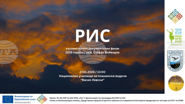 Природонаучният музей в село Черни Осъм ще проведе специална прожекция на документалния филм „Рис“, според информация, предоставена на БТА от Йорданка Якимова от културната институция. Късометражният проект, който се фокусира върху състоянието на риса в България, ще бъде представен на широка аудитория на 27 януари (вторник) от 13:00 часа. Поради продължаващия ремонт за подобряване на енергийната ефективност на музея, Националното училище за планински водачи в Черни Осъм, разположено непосредствено до музея, ще бъде домакин на събитието.
